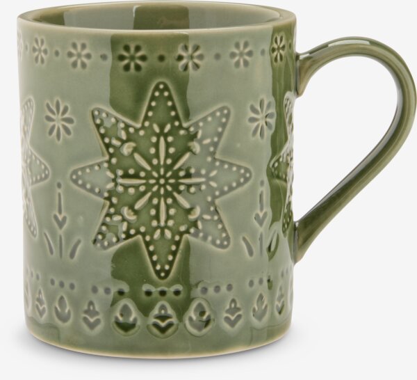 Πράσινη κούπα από γυαλιστερή πορσελάνη με ρουστίκ σχέδιο και χριστουγεννιάτικο μοτίβο. Χρησιμοποιήστε την κατά τη διάρκεια της χριστουγεννιάτικης περιόδου για καφέ, τσάι ή άλλα ζεστά ροφήματα. Ø8 x Υ9 cm