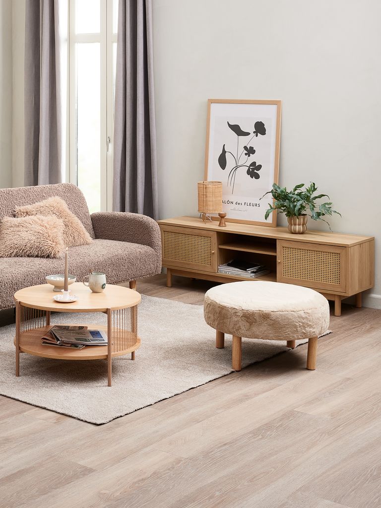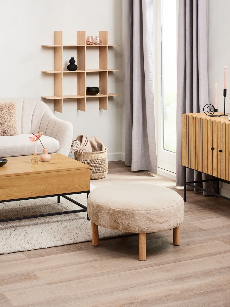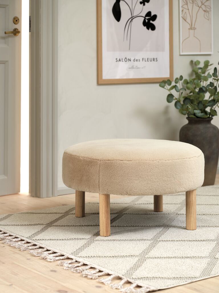RAMSDALΠουφ RAMSDAL Ø70 μπεζ χνουδωτό/χρωματισμένη φυσική δρυς