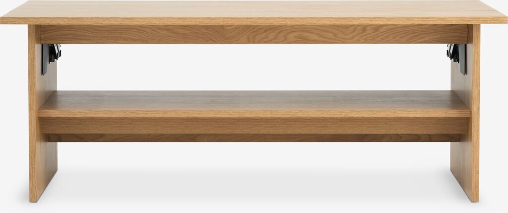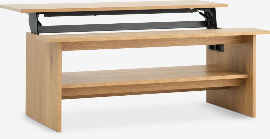 | Χαρακτηριστικό | Η λειτουργία ανυψωμένης επιφάνειας σας επιτρέπει να ανυψώσετε την επιφάνεια του τραπεζιού προς το μέρος σας, έτσι ώστε να μπορείτε να κάθεστε στον καναπέ σας και να τρώτε ή να χρησιμοποιείτε φορητό υπολογιστή χωρίς να χρειάζεται να σκύβετε προς τα εμπρός. Κάτω από την επιφάνεια του τραπεζιού υπάρχει μια κρυφή θήκη αποθήκευσης. Η επιφάνεια του τραπεζιού ανυψώνεται με μηχανισμό μεντεσέδων που ασφαλίζει στη θέση της για στιβαρότητα. Απλώς σπρώξτε την επιφάνεια του τραπεζιού προς τα κάτω στη θέση της για να την κλείσετε ξανά. |