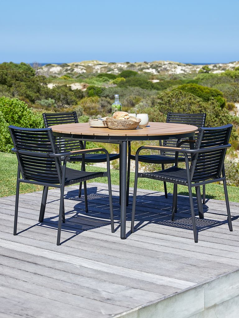 | Υλικό | Πλαίσιο: Το αλουμίνιο είναι ένα ελαφρύ και κομψό υλικό που δεν σκουριάζει. Το αλουμίνιο δεν απαιτεί συντήρηση και μπορεί να καθαριστεί εύκολα με ένα υγρό πανί. Το τεχνητό ξύλο είναι ένα συνθετικό υλικό, που δε χρειάζεται συντήρηση, με δομή φυσικής όψης ξύλου. Κατασκευάζεται από πλαστικό, όπως το πολυστυρένιο, το οποίο δημιουργεί ένα ισχυρό και ανθεκτικό στις καιρικές συνθήκες, υλικό. Το τεχνητό ξύλο είναι UV-προστατευμένο, έτσι εξασφαλίζει μία ανεξίτηλη επιφάνεια. |