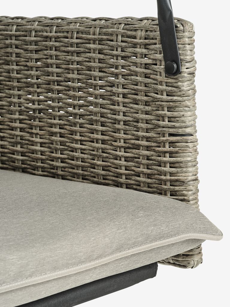 | Υλικό | Πλαίσιο: Ατσάλι, Πλάτη: 100% πολυεστέρας, Ατσάλι, Κάθισμα: 100% πολυεστέρας, Ατσάλι, Μπράτσο: Το συνθετικό ρατάν είναι ένας τύπος ελαφριάς, συνθετικής ψάθας. Είναι ανθεκτικό ενάντια στη φθορά, UV-προστατευμένο και ανθεκτικό στις καιρικές συνθήκες. |