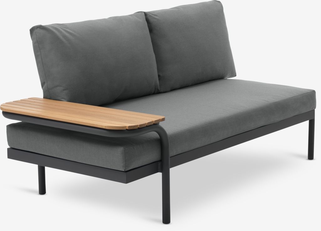 Κρεβάτι-καναπές από αλουμίνιο και λακαρισμένο FSC® σκληρό ξύλο. Περιλ. πολυτελή μαξιλάρια με ανθεκτικό κάλυμμα δομής υφαντού. Οι κινητές πλάτες σας επιτρέπουν να τοποθετήσετε τα μαξιλάρια της πλάτης όπως επιθυμείτε. Π181 x Υ71 x Β87 cm
