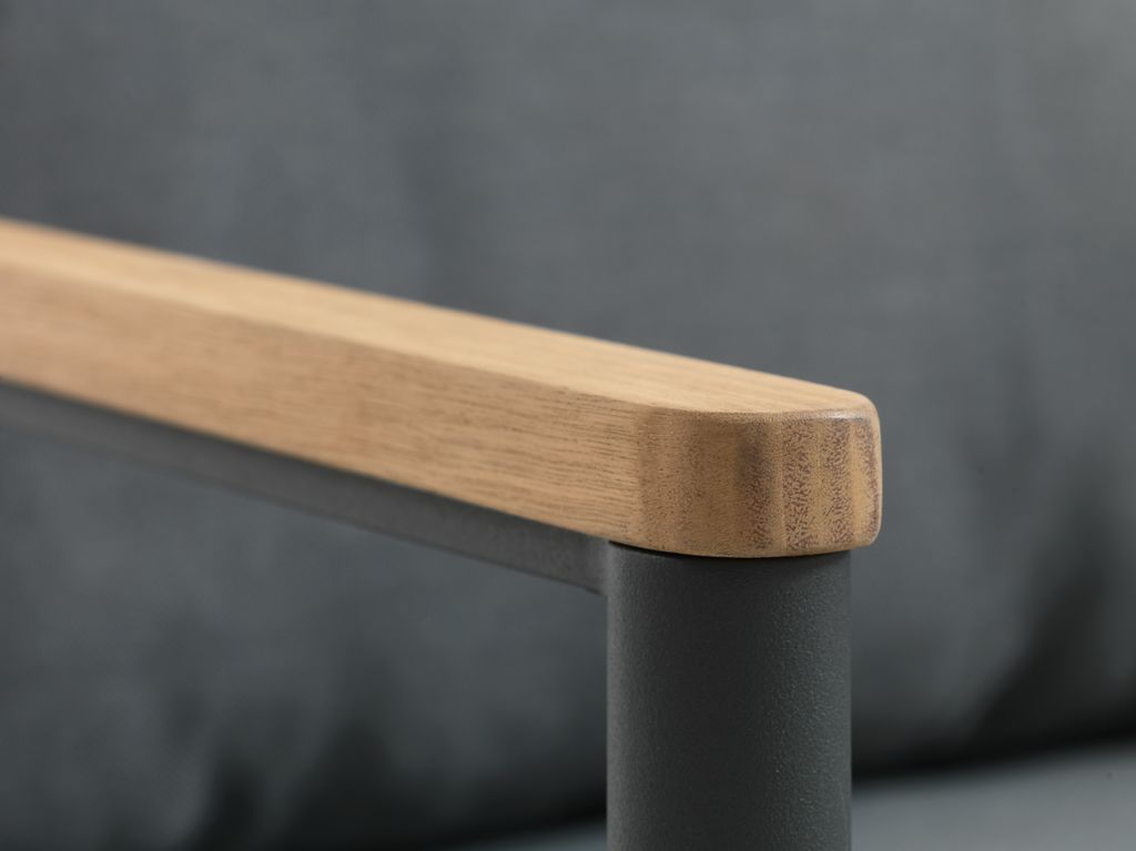 Ο συνδυασμός ξύλου και αλουμινίου είναι εξαιρετικής αισθητικής. Ελαφρύ, εύκολο στη συναρμολόγηση, πολύ καλή ποιότητα υφασμάτων που αφαιρούνται για να πλυθούν. Το ιδιαίτερο με αυτό έναντι άλλων αλουμινένιων σαλονιών είναι ότι η πλάτη είναι καμπυλωτή και κάνει πιο ευχάριστη την επαφή. Φαίνεται ακριβό αλλά αξίζει το κάθε του ευρώ.