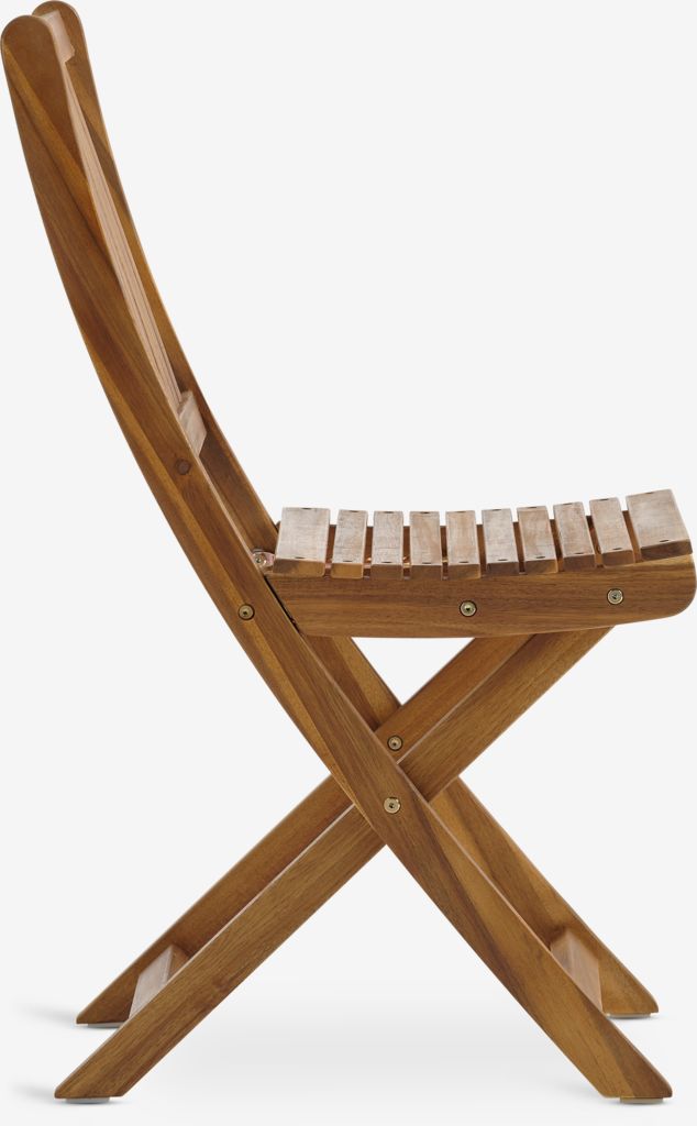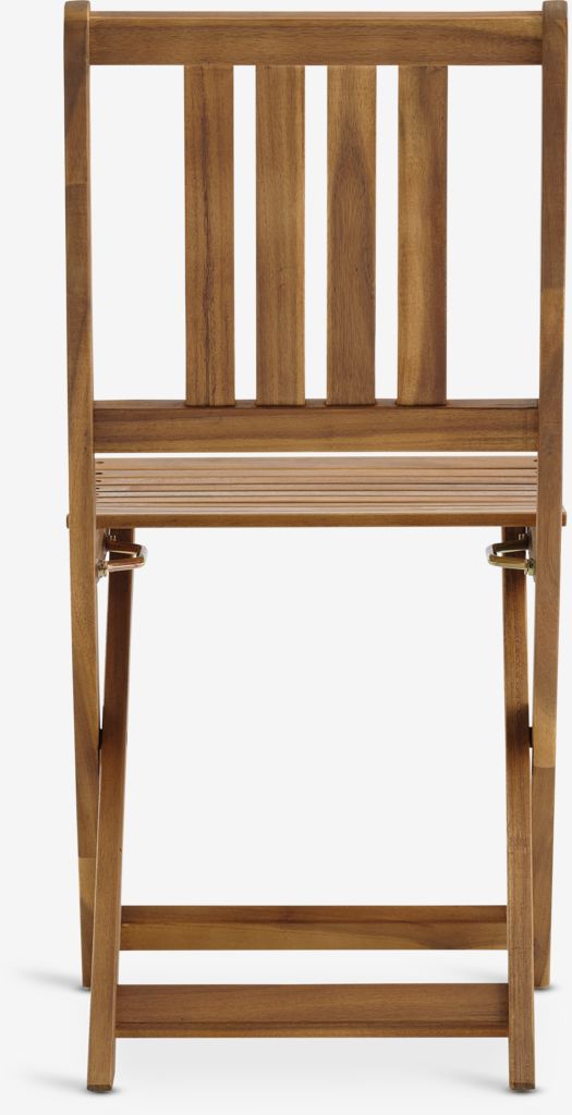 Πτυσσόμενη καρέκλα από ελαιωμένο σκληρό ξύλο FSC®. Το ανθεκτικό ξύλο επεξεργάζεται με λάδι για να το προστατεύει και να αναδεικνύει το φυσικό του χρώμα. Συνιστάται το τακτικό λάδωμα του ξύλου για να συνεχίσει να διατηρεί το χρώμα του και για να το προστατεύει από την υγρασία. Η καρέκλα κήπου μπορεί να διπλωθεί πλήρως, γεγονός που καθιστά εύκολη τη μεταφορά και την αποθήκευση.