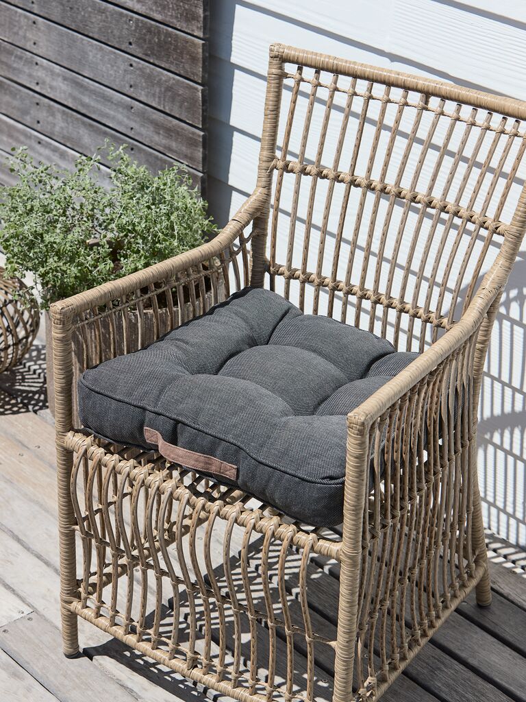 Πολυτελές μαξιλάρι κήπου με ανθεκτικό, δομής υφαντού κάλυμμα. Γέμισμα από αφρό πολυαιθέρα (100% ανακυκλωμένο). Για κάθισμα καρέκλας. 50x50x8 cm