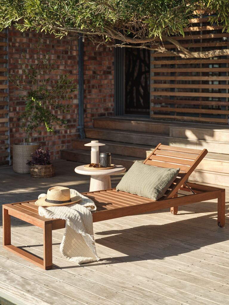 Ξαπλώστρα από λαδωμένο σκληρό ξύλο FSC® και ατσάλι. Π65 x Μ188 x Υ81 cm