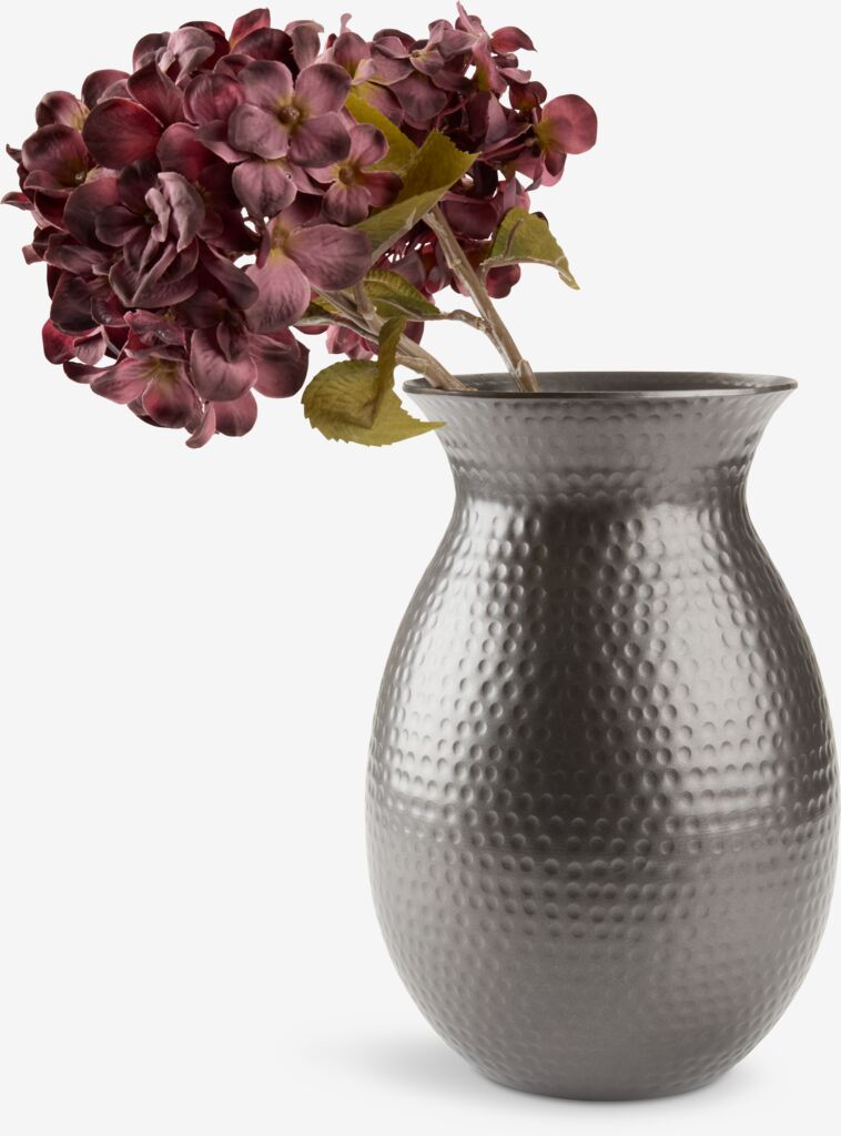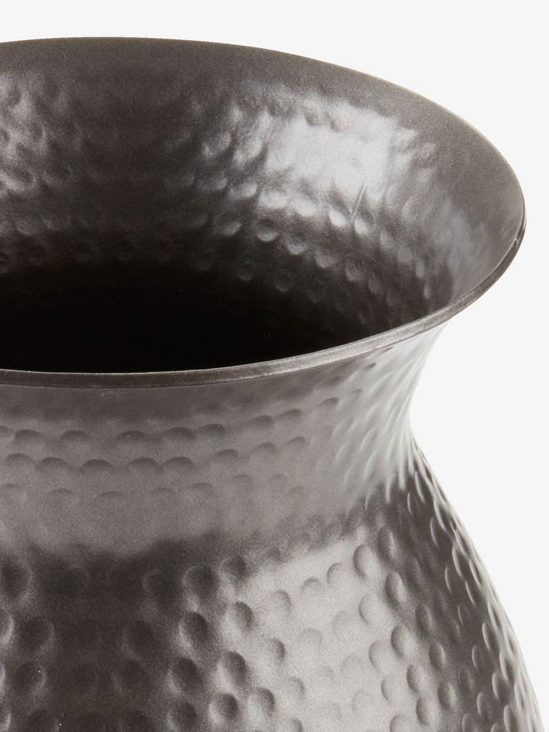 Καφέ βάζο από αλουμίνιο με καμπυλωτό σχήμα. Η σφυρήλατη υφή του βάζου τού δίνει μια μοναδική εμφάνιση. Ø15 x Υ27 cm