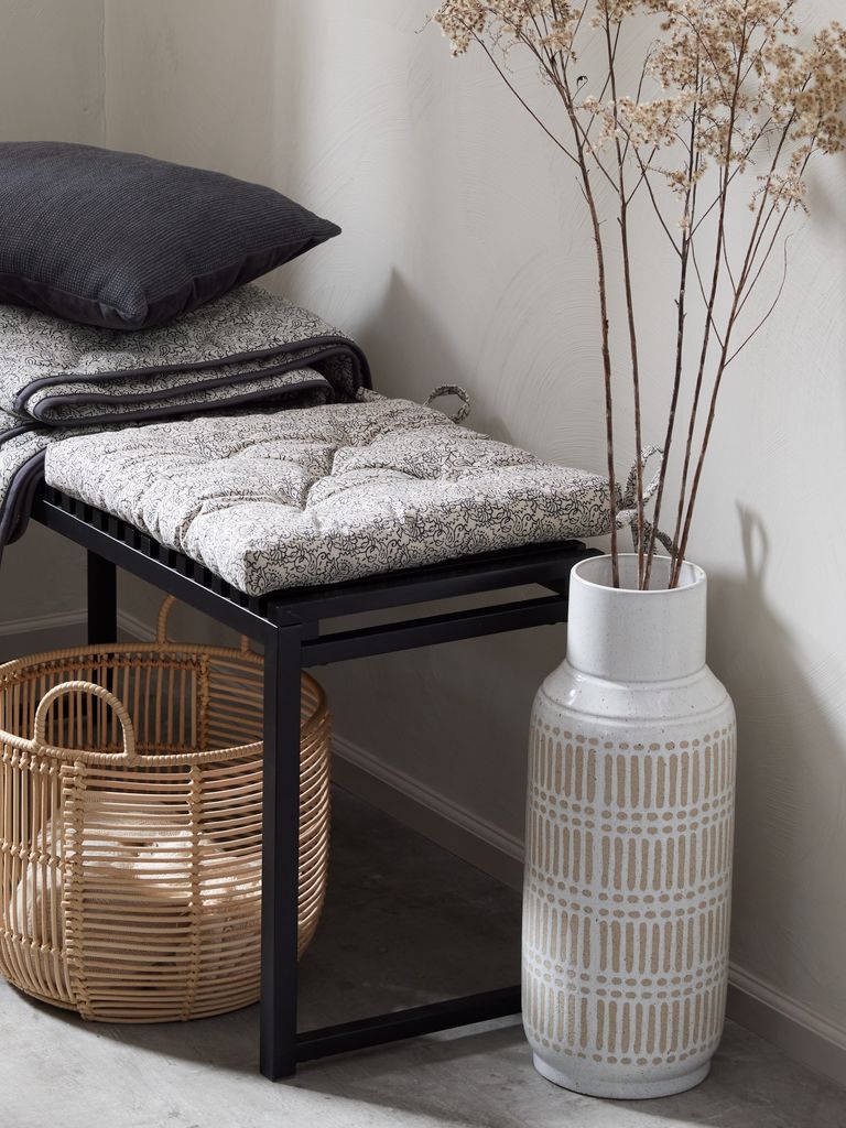 Βάζο από stoneware με διακοσμητικό μοτίβο σε χρώμα άμμου και λευκό. Το ψηλό σχέδιο είναι ιδανικό για την προβολή λουλουδιών και κλαδιών ή μπορεί να χρησιμοποιηθεί και ως αυτόνομο βάζο δαπέδου. Ø18 x Υ47 cm